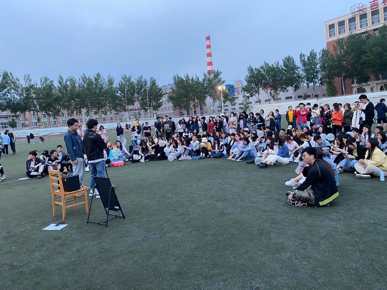 载运系、交管系研究生范志臻、战勇斌同学合唱的《我还年轻我还年轻》,带动全场同学顿时活跃起来;此次活动还邀请了毕业年级师姐杨舒婷同学为大家带来了《世间美好与你环环相扣》,明朗的歌词和旋律,让大家在夏季傍晚的微风中感受到无尽的温暖和温柔。南岭校区其他学院的同学们也在现场热烈氛围的感染下踊跃参与其中。现场观众们反响热烈,不时爆发出阵阵掌声。活动尾声,在现场工作人员的带领下,大家高声合唱《我和我的祖国》。同学们自觉起立,气氛庄严肃立,共同祝贺建党一百周年。朗朗上口的歌词和娓娓动听的旋律里,充分表达了同学们对党和祖国发展成就的崇高敬意。