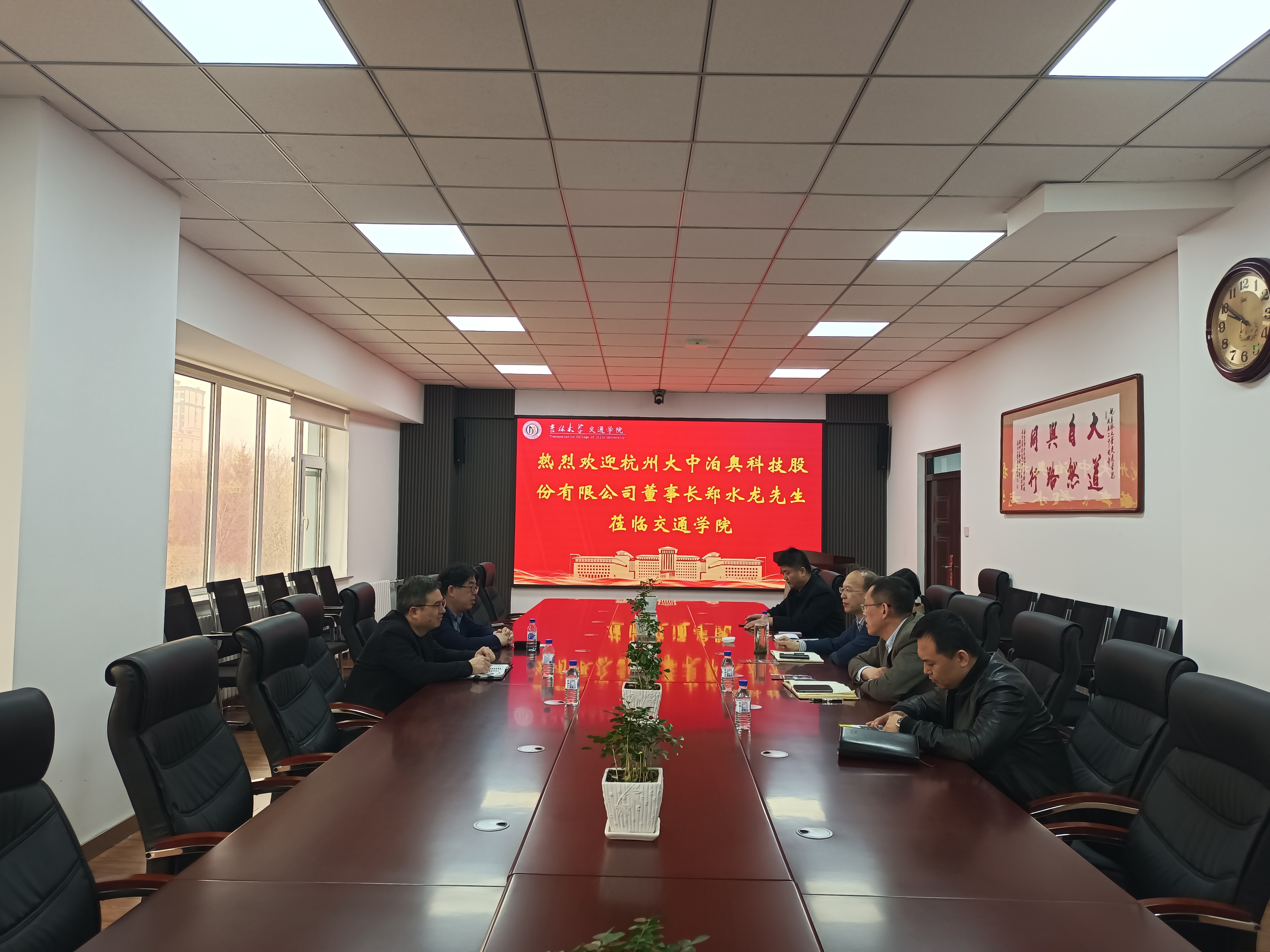 李善兴书记首先对郑水龙先生来访表示热烈欢迎,李世武院长从学院教学科研、人才培养和成果转化等方面做了简要介绍。郑水龙先生介绍了公司发展现状、未来趋势、人才需求等情况,以及在停车设施、停车管理、智慧停车等方面的进展。接着,双方就产学研合作、实践教学基地建设、学生就业等方面进行深入交流。学院将持续加强与杭州大中泊奥科技股份有限公司业务联系与交流,推动产学研深度融合,为企业高质量发展和毕业生就业提供更有力的支撑保障。