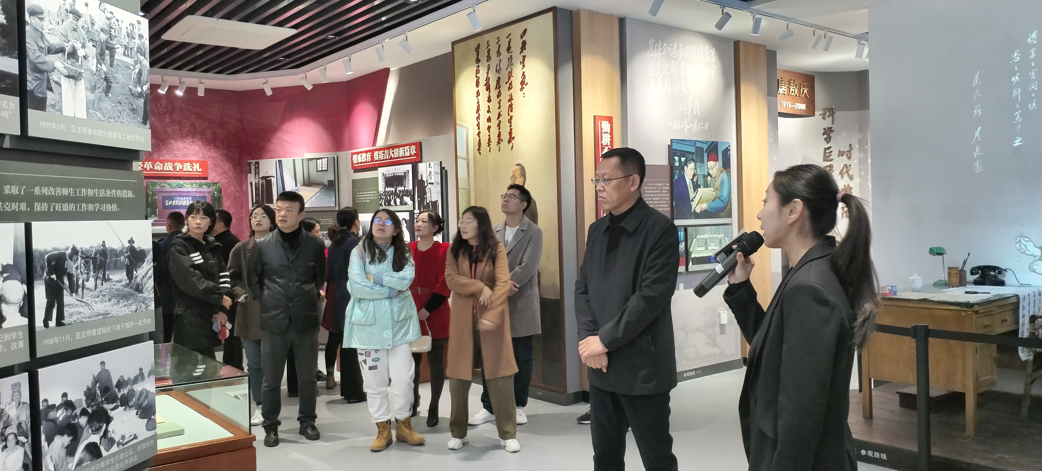 讲解员引领教职工们来到“创校先驱”展区,为大家讲述了六所学校的创校历史,介绍了六位建校校长林枫、饶斌、江一真、李四光、陈先舟、任抟久的杰出历史贡献。在“功昭校史”展区,讲解员介绍了吕振羽、匡亚明、唐敖庆、徐华清、古大存、贾清汉、殷希彭、喻德渊、刘靖、陆锦、何济林、王恩厚12位为学校发展建设做出突出贡献先贤们的卓著功勋。在“滋兰树惠”、“薪火弦歌”、“赓续传承”展区,教职工们认真了解了余瑞璜、朱光亚、蔡镏生、王湘浩等46位先贤的突出贡献和感人故事。
