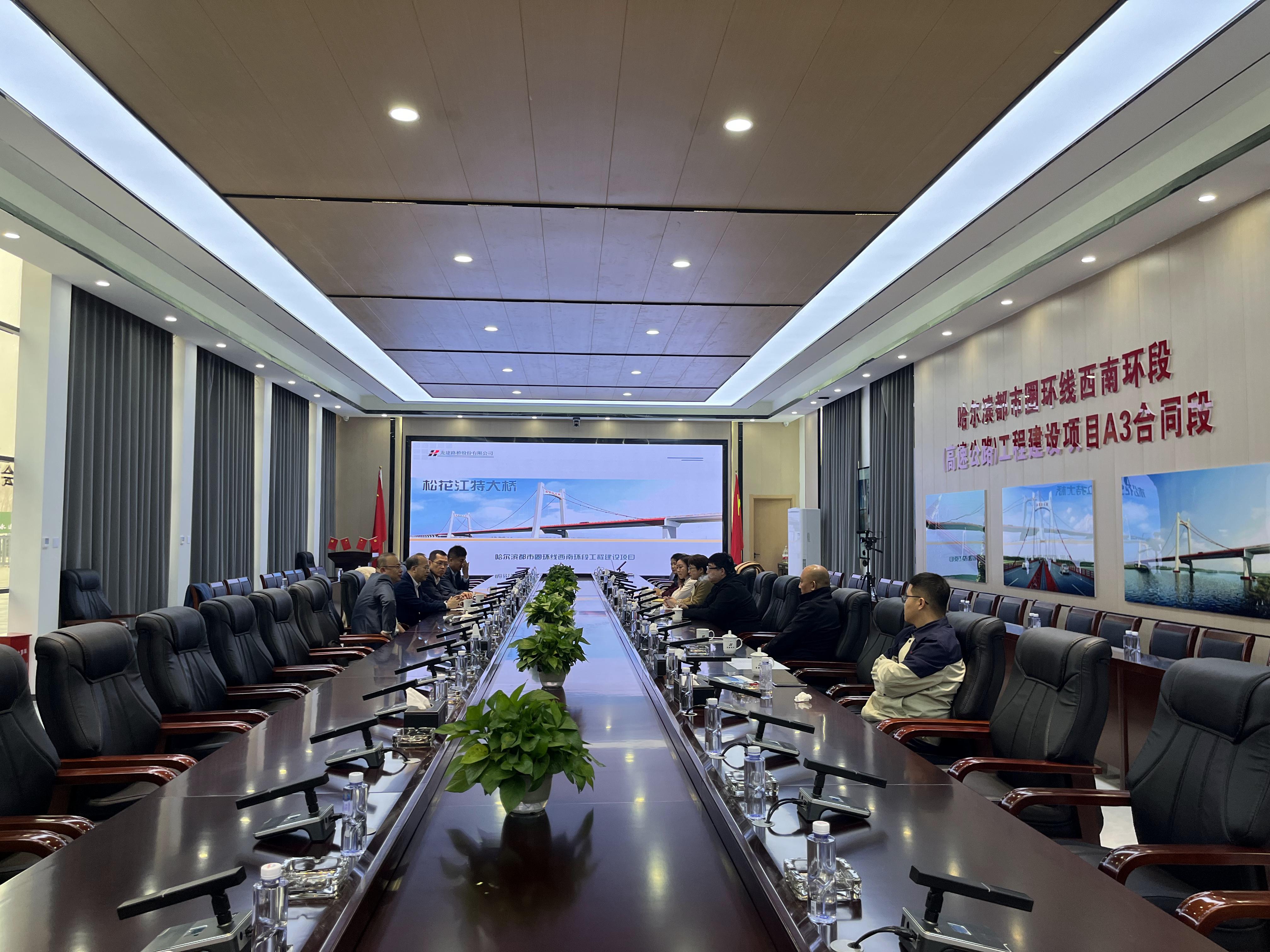 一行在龙建股份相关负责人陪同下,考察了哈尔滨都市圈环线西南环段(高速公路)工程建设项目A3合同段(松花江特大桥)项目,参观了龙建股份第四、第六工程有限公司。