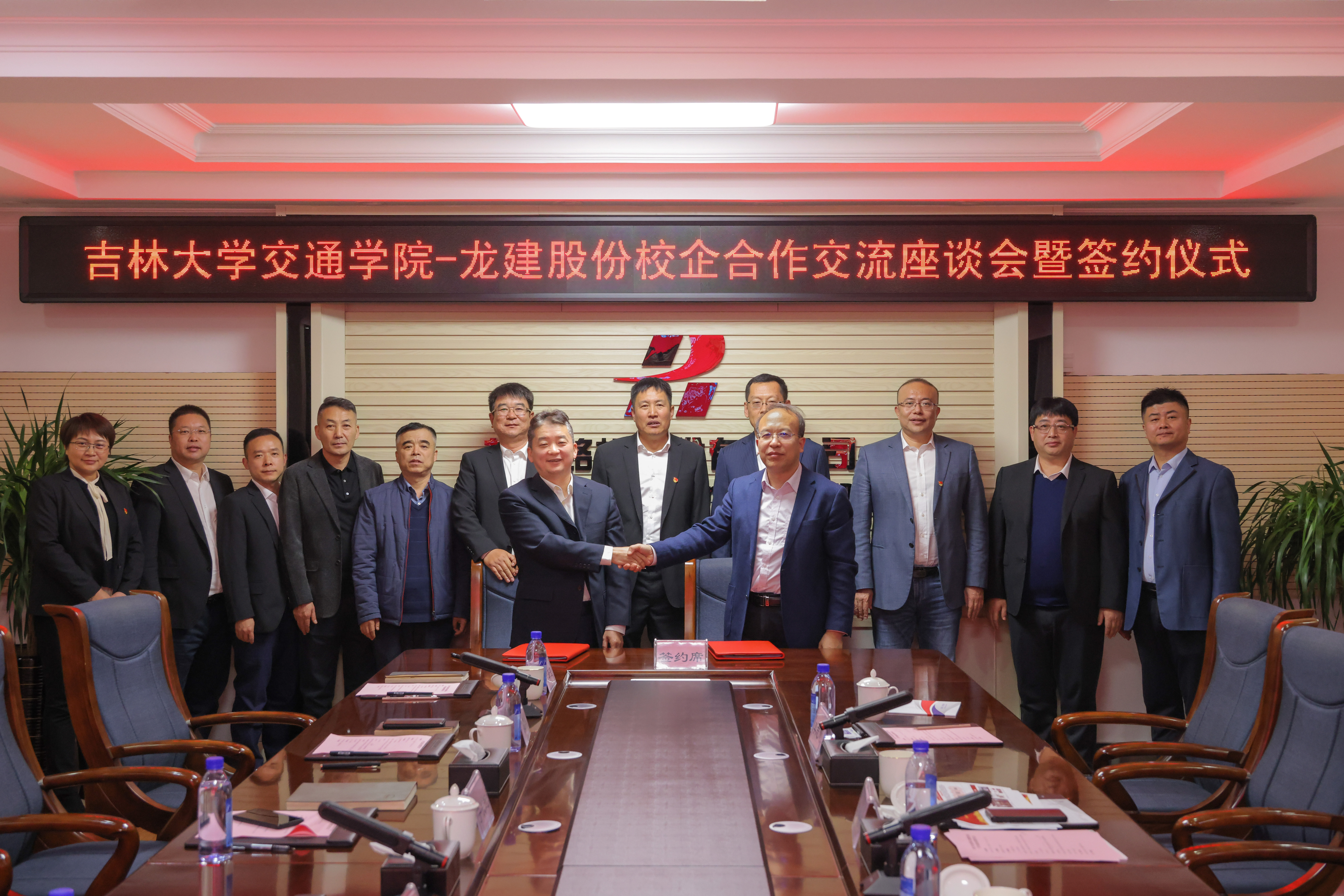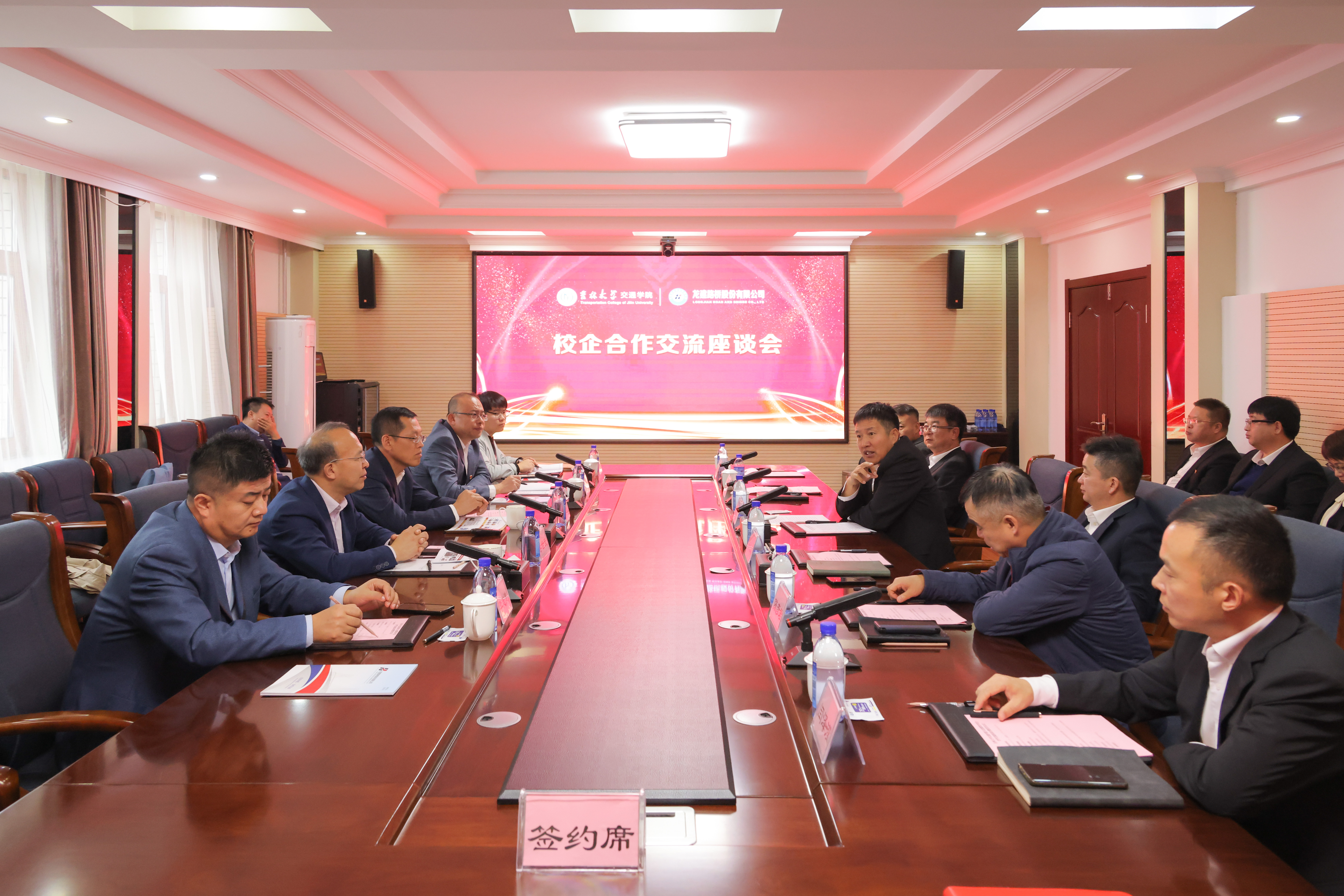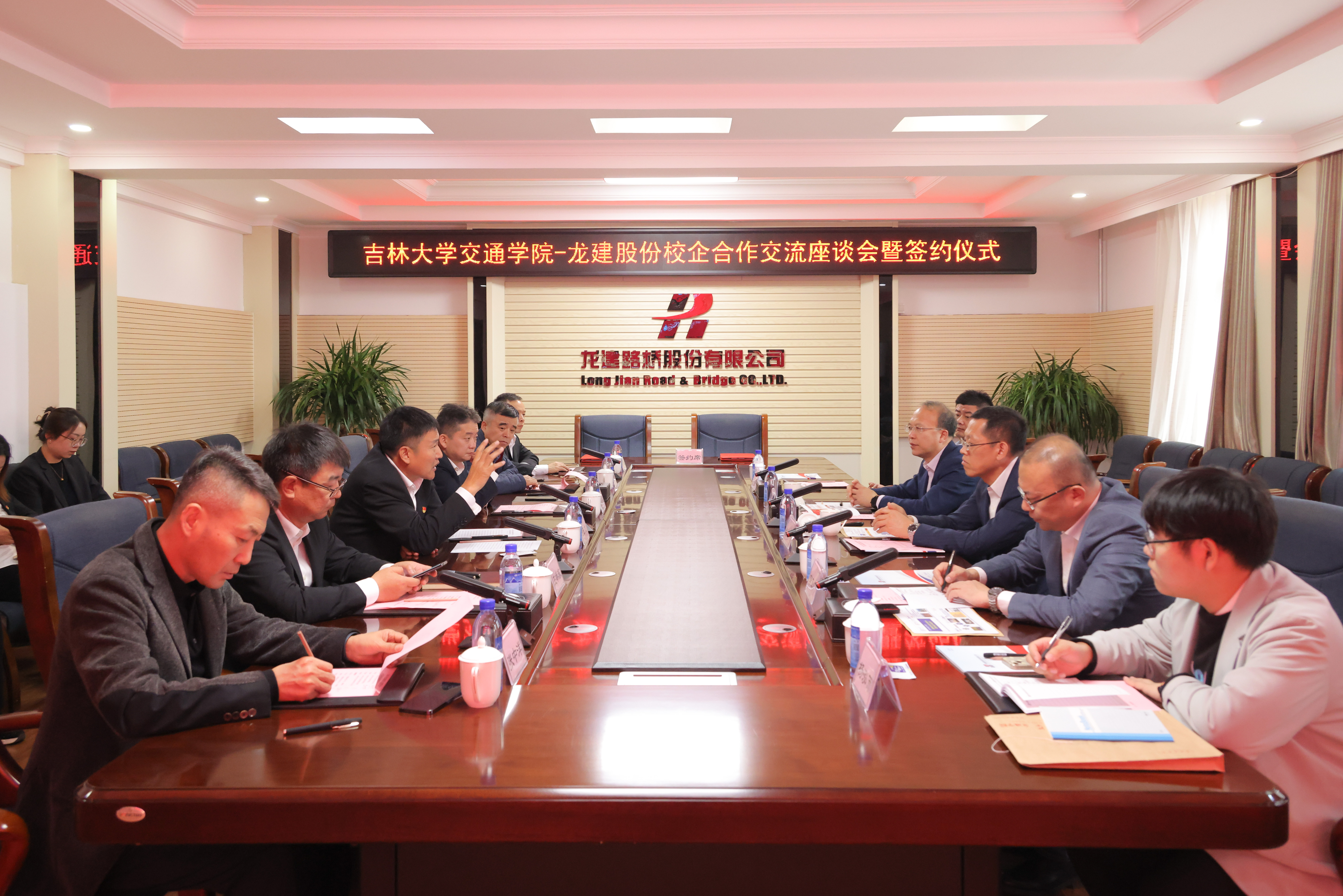 赴黑龙江龙建路桥股份有限公司,洽谈校企合作交流并举行签约仪式。学院党委书记李善兴,院长李世武,副院长宫亚峰,院长助理李志慧,龙建路桥股份有限公司(龙建股份)党委书记、董事长田玉龙,党委副书记、总经理宁长远,党委副书记、工会主席王举东,党委委员、总工程师陈彦君,副总经理张中洋,董事会秘书闫泽滢,人力资源部副部长(主持工作)李忠宝,科技发展部部长王艳,研发中心总经理孙明刚等同志出席会议,会议由王举东主持。