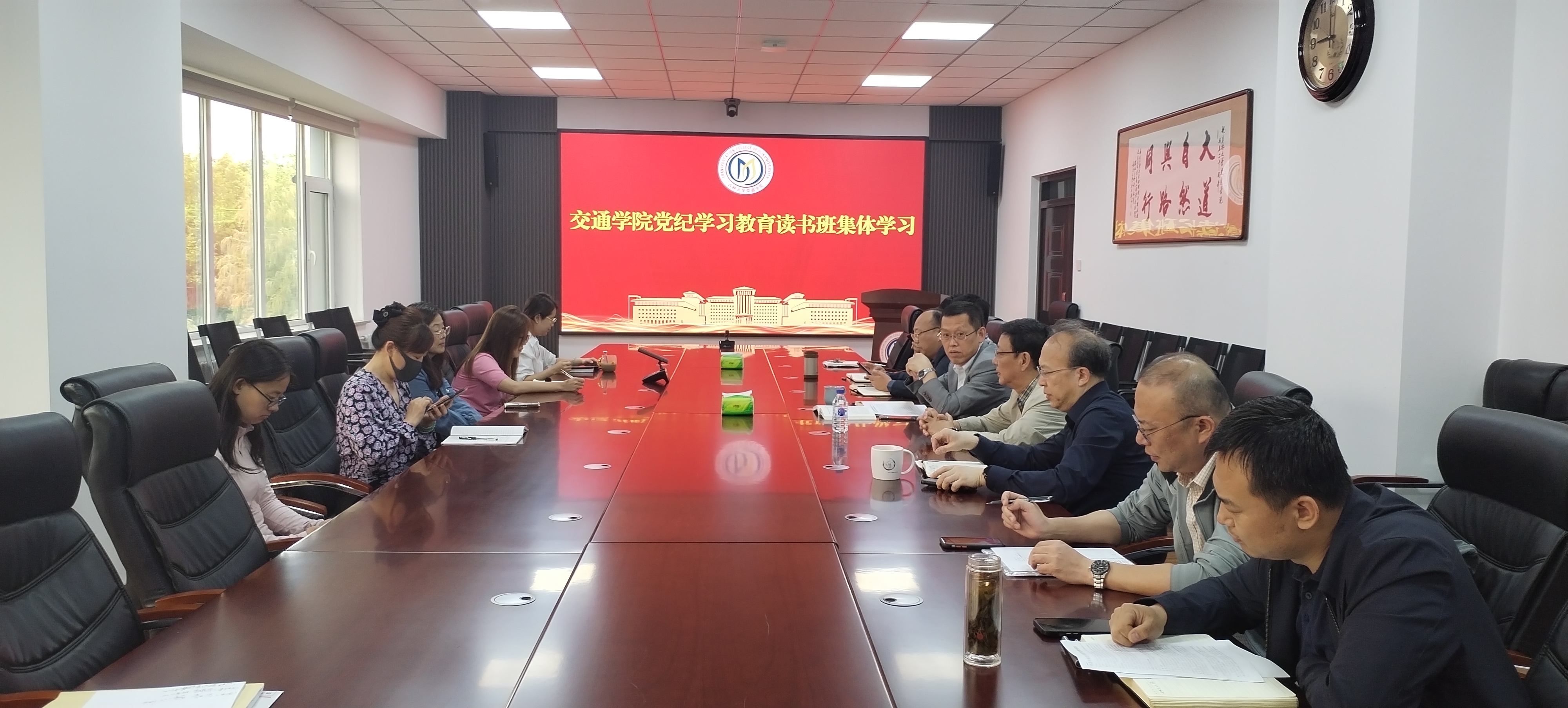 在交通馆241会议室召开党纪学习教育读书班集体学习会议。学院领导班子成员、党委委员、党支部书记参加会议,学校党建工作联络员刘炳恩列席指导,会议由党委书记李善兴主持。