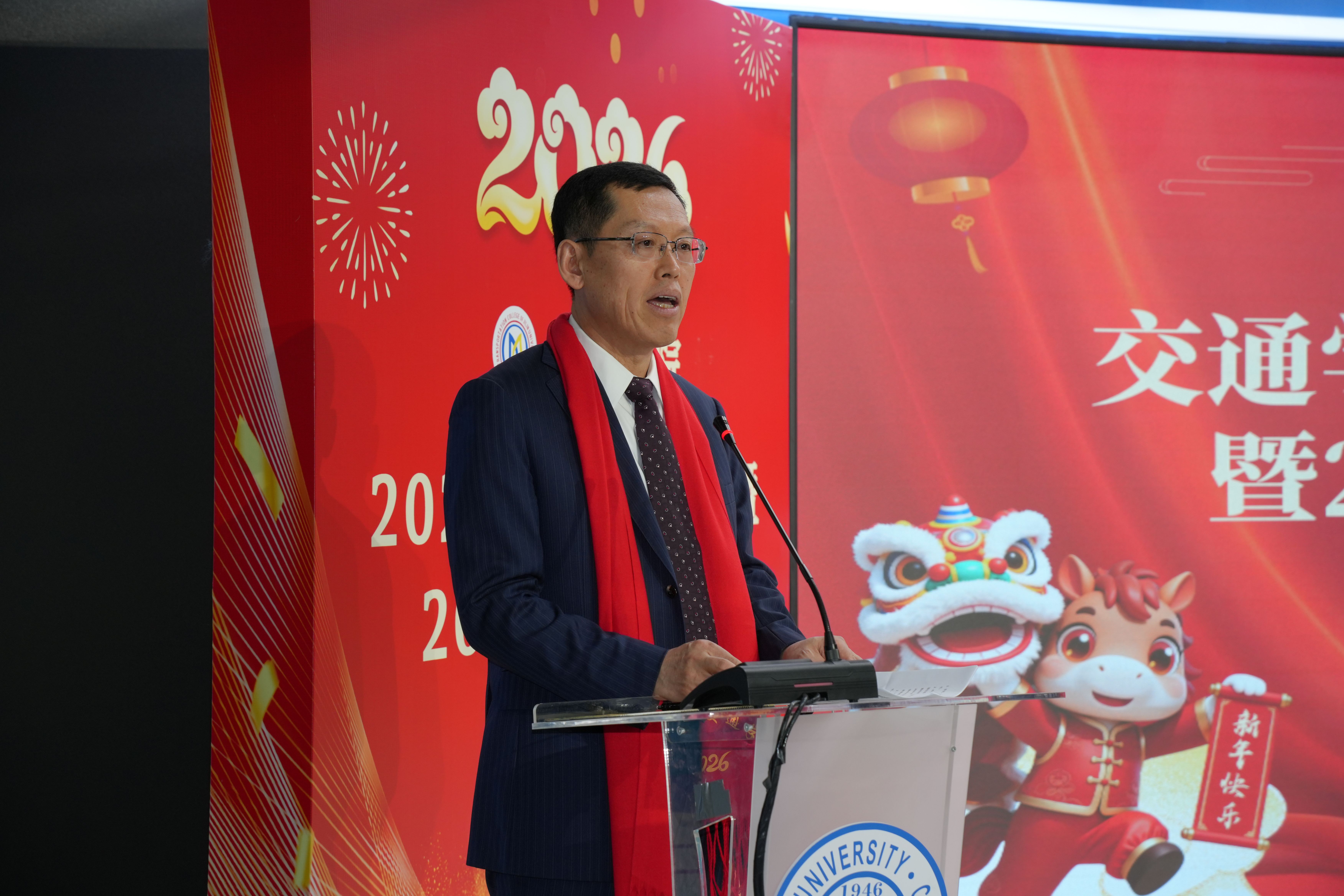 表彰大会结束后,学院2026新年联欢会拉开帷幕。联欢会现场布置得温馨喜庆,充满了节日氛围。各系和机关精心准备的歌曲、舞蹈、诗朗诵、脱口秀等节目依次登场。教职工们纷纷展示才艺,用歌声传递对新年的美好期许,用朗诵表达对学院的热爱之情。