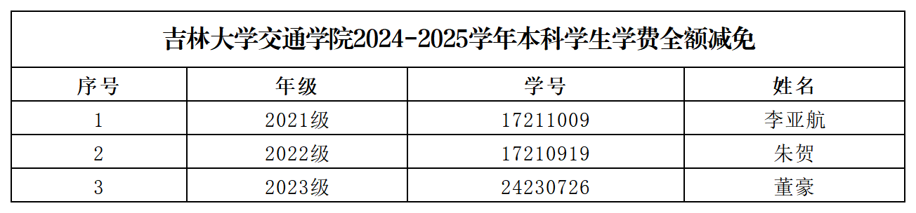 2024-2025学年学费全额减免初评名单予以公示。