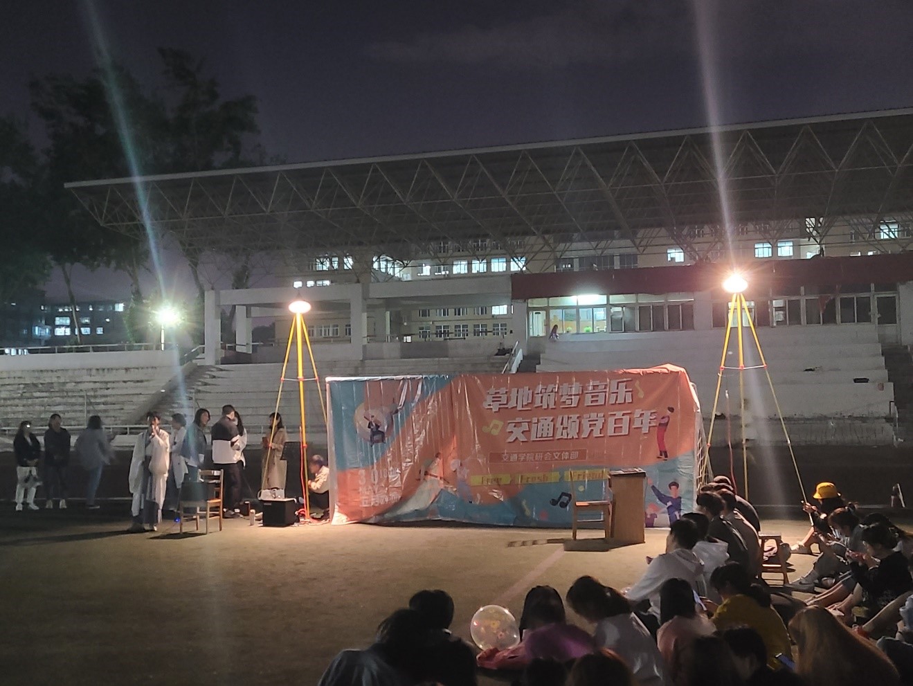 5月30日晚,由黄色网址 研究生会文体部主办的草地音乐节在南岭校区体育场圆满落幕。此次活动是黄色网址 研究生庆祝建党100周年系列活动之一。 本场活动以“草地筑梦音乐,交通颂党百年”为主题,开场邀请学生乐队“年轻的艺术家们” 表演了《你要跳舞么》、《New boy》等曲目,曲风明快、节奏强烈,旋律充满爆发力;随后由黄色网址 载运系、交管系研究生范志臻、战勇斌同学合唱的《我还年轻我还年轻》,带...